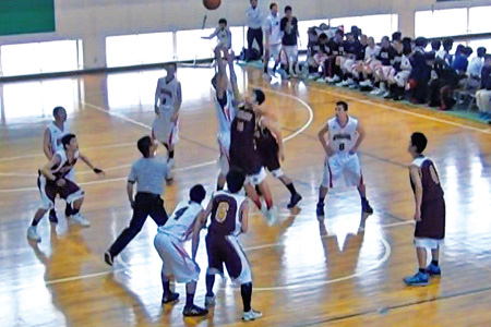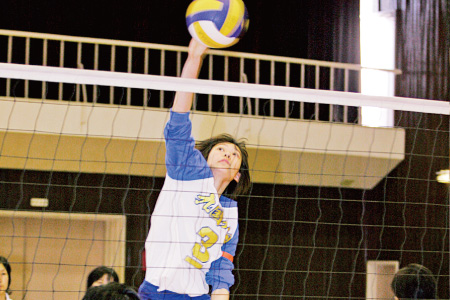 第1体育館が練習場です。自分たちのプレーを最後まで貫き通す精神力と勝負根性を育成しています。男女とも、県大会出場を目標に頑張っています。