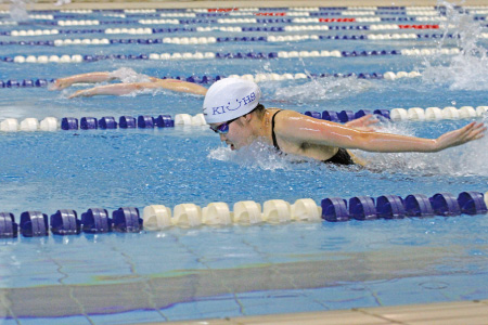 校内にはプールがないので、外部のスイミングスクールなどで練習しています。県大会や九州大会の常連で、毎年全国をめざしています。